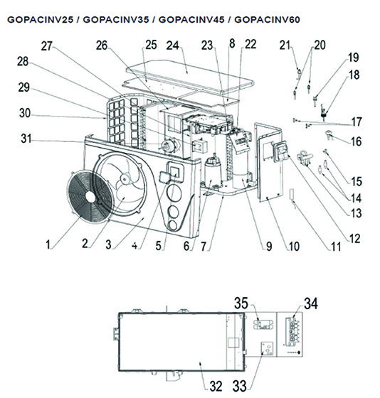 Pièces détachées pour Pompe à chaleur GOPAC inverter 6,5/9 kW - ref : GOPACINV35